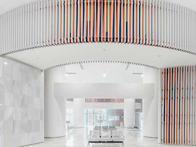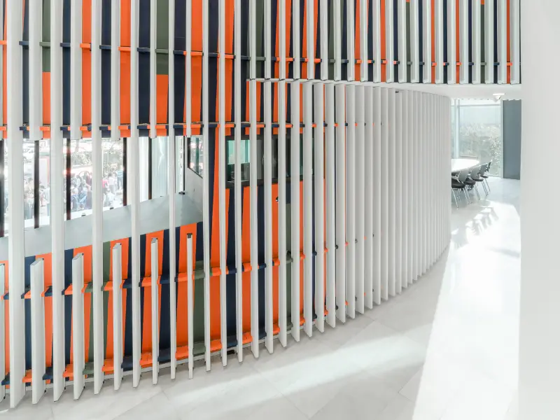 Además, la rampa de acceso peatonal favorece la accesibilidad y la integración con el espacio público, promoviendo una arquitectura abierta, inclusiva y en diálogo con la ciudad.