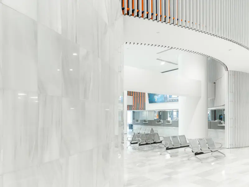 El uso de materiales nobles como el mármol y una fachada acristalada hacia la Av. Francisco de Miranda aportan transparencia, modernidad y conexión visual con el entorno urbano. Las zonas cerradas se destinan eficientemente a espacios de alta seguridad como bóvedas y servidores, garantizando el funcionamiento óptimo de la agencia.