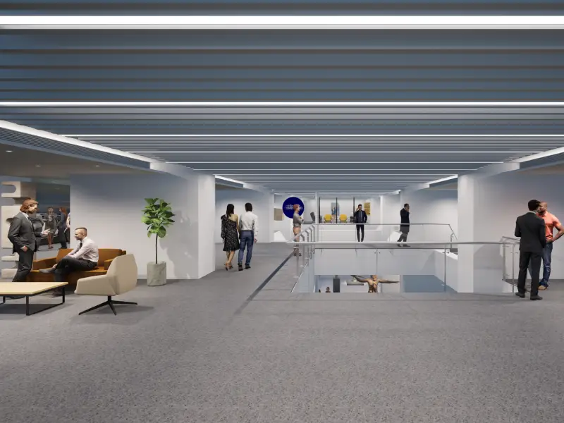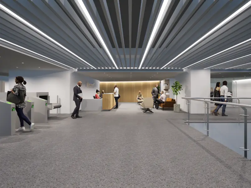 Esta obra tuvo como objetivo mejorar el acceso peatonal de empleados y visitantes desde la Av. Andrés Bello y brindar un espacio más agradable a nivel visual que permita a los transeúntes conectar con el acceso. El Hall de acceso principal a la Torre ahora cuenta con un recorrido más amplio y directo, se reubico la escalera que conecta con el piso 1 logrando un mejor aprovechamiento del espacio y una escalera cuyo diseño cumpla con las especificaciones y normas existentes.